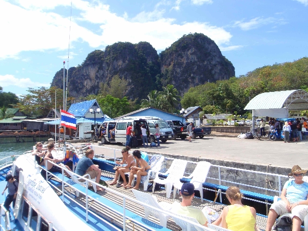 dovolena 2009 Thajsko 01/2009 -02/2009 ostrovy při putování lodí na další ostrov Koh PHI PHI - přestup z lodi do lodi.